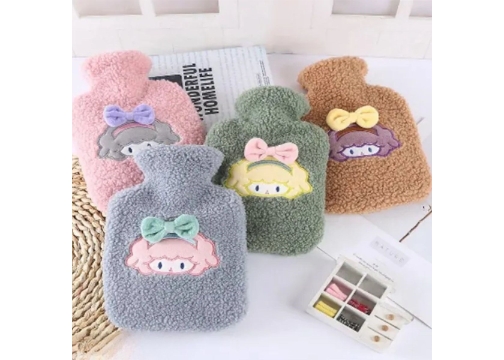 1 Litre Polar Peluş Örgülü,Kurdeleli Saçlı Kız Model Sıcak Su Torbası